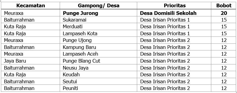 Calon peserta didik jalur zonasi yang mendaftar di SMAN 1 Banda Aceh terbagi dalam zona sebagai berikut :